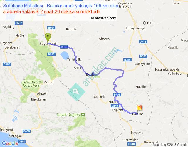 Sofuhane Mahallesi - Balcılar arası yaklaşık olarak 90 km/h ile yukarıda belirtilen sürede olup, iki yerin kuş uçuşu uzaklığı (mesafesi) 94'dir. Yolculuk otobüsle 3 saat 9 dakika sürmektedir.