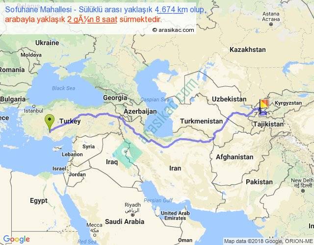 Sofuhane Mahallesi - Sülüklü arası yaklaşık olarak 90 km/h ile yukarıda belirtilen sürede olup, iki yerin kuş uçuşu uzaklığı (mesafesi) 3243'dir. Eğer belirtilen yerler arasında uçak seferi var ise bu süre uçakla 4 saat 59 dakika'ya kadar düşebilir. Yolculuk otobüsle 3 gün 0 saat sürmektedir.