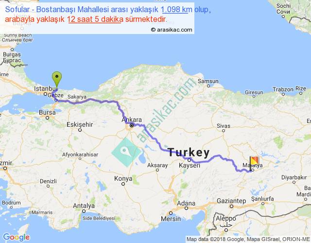 Sofular - Bostanbaşı Mahallesi arası yaklaşık olarak 90 km/h ile yukarıda belirtilen sürede olup, iki yerin kuş uçuşu uzaklığı (mesafesi) 808'dir. Eğer belirtilen yerler arasında uçak seferi var ise bu süre uçakla 1 saat 14 dakika'ya kadar düşebilir. Yolculuk otobüsle 15 saat 42 dakika sürmektedir.