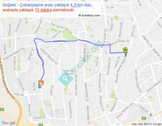 Soğanlı - Çobançeşme arası yaklaşık olarak 90 km/h ile yukarıda belirtilen sürede olup, iki yerin kuş uçuşu uzaklığı (mesafesi) 3'dir. Yolculuk otobüsle 16 dakika sürmektedir.