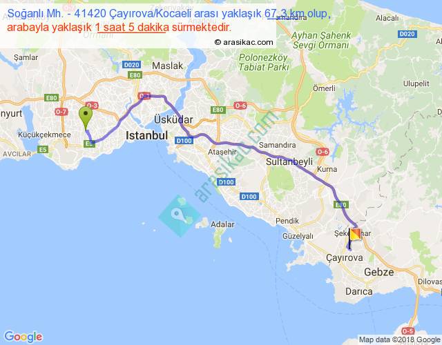 Soğanlı Mh. - 41420 Çayırova Kocaeli arası detaylı bilgi