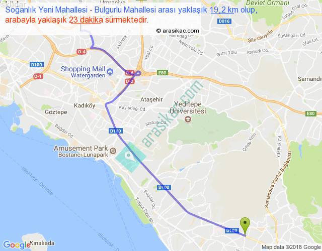 Soğanlık Yeni Mahallesi - Bulgurlu Mahallesi arası yaklaşık olarak 90 km/h ile yukarıda belirtilen sürede olup, iki yerin kuş uçuşu uzaklığı (mesafesi) 15'dir. Yolculuk otobüsle 29 dakika sürmektedir.