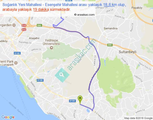 Eğer Soğanlık Yeni Mahallesi Esenşehir Mahallesi arası ne kadar yakar (benzin/mazot) diyorsanız, kilometrede 3 ₺ yakan bir aracınız var ise 54, km'de 4 ₺ yakan bir aracınız var ise 72, km'de 5 ₺ yakan bir aracınız var ise 90 ile bu yolculuğu tamamlayabilirsiniz.