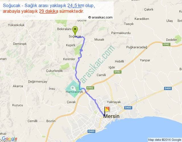 Soğucak - Sağlık arası yaklaşık olarak 90 km/h ile yukarıda belirtilen sürede olup, iki yerin kuş uçuşu uzaklığı (mesafesi) 18'dir. Yolculuk otobüsle 37 dakika sürmektedir.