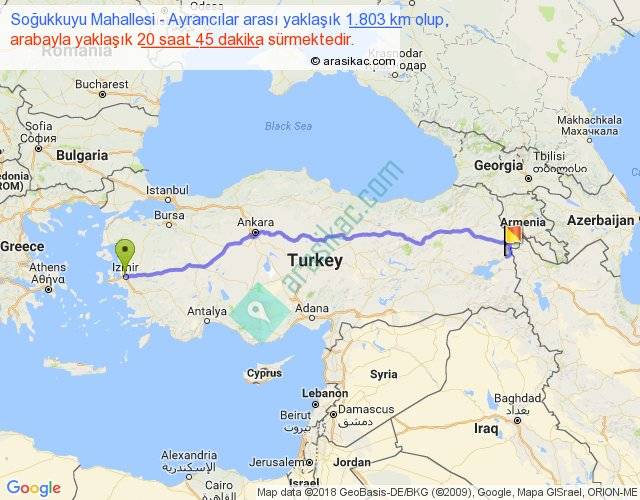 Soğukkuyu Mahallesi - Ayrancılar arası yaklaşık olarak 90 km/h ile yukarıda belirtilen sürede olup, iki yerin kuş uçuşu uzaklığı (mesafesi) 1442'dir. Eğer belirtilen yerler arasında uçak seferi var ise bu süre uçakla 2 saat 13 dakika'ya kadar düşebilir. Yolculuk otobüsle 1 gün 2 saat sürmektedir.
