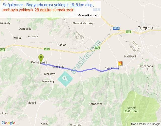 Soğukpınar - Bagyurdu arası yaklaşık olarak 90 km/h ile yukarıda belirtilen sürede olup, iki yerin kuş uçuşu uzaklığı (mesafesi) 18'dir. Yolculuk otobüsle 36 dakika sürmektedir.