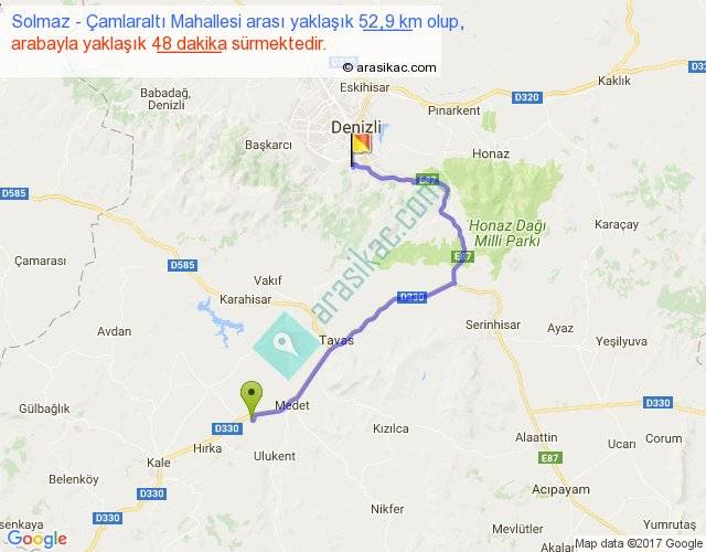 Eğer Solmaz Çamlaraltı Mahallesi arası ne kadar yakar (benzin/mazot) diyorsanız, kilometrede 3 ₺ yakan bir aracınız var ise 156, km'de 4 ₺ yakan bir aracınız var ise 208, km'de 5 ₺ yakan bir aracınız var ise 260 ile bu yolculuğu tamamlayabilirsiniz.