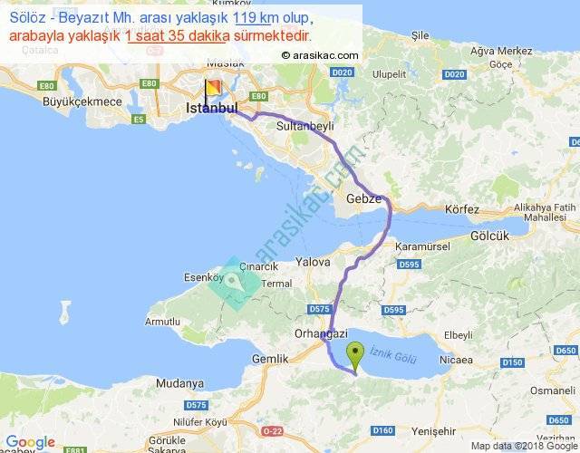 Sölöz - Beyazıt Mh. arası yaklaşık olarak 90 km/h ile yukarıda belirtilen sürede olup, iki yerin kuş uçuşu uzaklığı (mesafesi) 78'dir. Yolculuk otobüsle 2 saat 3 dakika sürmektedir.
