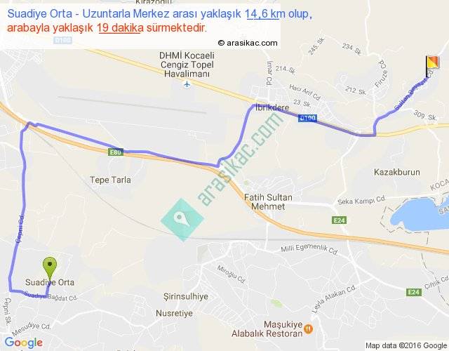 Eğer Suadiye Orta Uzuntarla Merkez arası ne kadar yakar (benzin/mazot) diyorsanız, kilometrede 3 ₺ yakan bir aracınız var ise 42, km'de 4 ₺ yakan bir aracınız var ise 56, km'de 5 ₺ yakan bir aracınız var ise 70 ile bu yolculuğu tamamlayabilirsiniz.