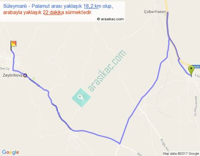 Süleymanlı - Palamut arası yaklaşık olarak 90 km/h ile yukarıda belirtilen sürede olup, iki yerin kuş uçuşu uzaklığı (mesafesi) 9'dir. Yolculuk otobüsle 28 dakika sürmektedir.