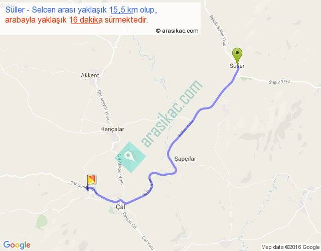 Süller - Selcen arası yaklaşık olarak 90 km/h ile yukarıda belirtilen sürede olup, iki yerin kuş uçuşu uzaklığı (mesafesi) 12'dir. Yolculuk otobüsle 20 dakika sürmektedir.