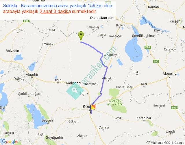 Eğer Suluklu Karaaslanüzümcü arası ne kadar yakar (benzin/mazot) diyorsanız, kilometrede 3 ₺ yakan bir aracınız var ise 477, km'de 4 ₺ yakan bir aracınız var ise 636, km'de 5 ₺ yakan bir aracınız var ise 795 ile bu yolculuğu tamamlayabilirsiniz.