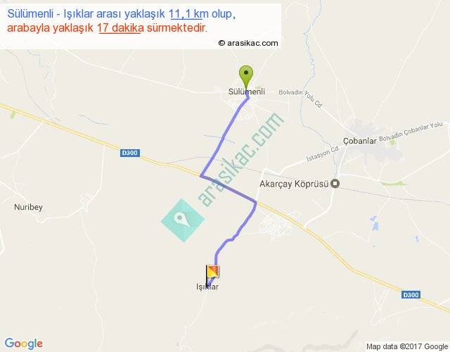 Sülümenli - Işıklar arası yaklaşık olarak 90 km/h ile yukarıda belirtilen sürede olup, iki yerin kuş uçuşu uzaklığı (mesafesi) 8'dir. Yolculuk otobüsle 22 dakika sürmektedir.