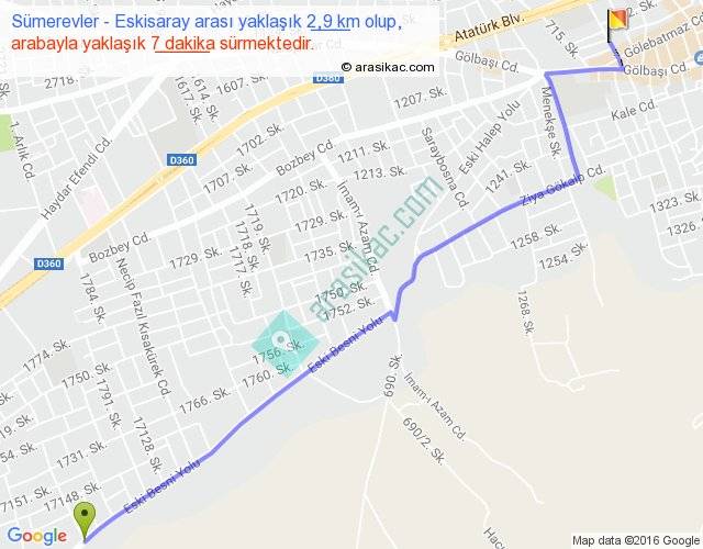 Sümerevler - Eskisaray arası yaklaşık olarak 90 km/h ile yukarıda belirtilen sürede olup, iki yerin kuş uçuşu uzaklığı (mesafesi) 2'dir. Yolculuk otobüsle 9 dakika sürmektedir.