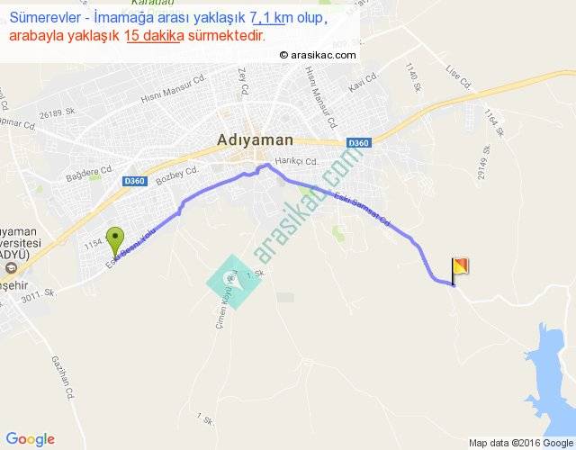 Sümerevler - İmamağa arası yaklaşık olarak 90 km/h ile yukarıda belirtilen sürede olup, iki yerin kuş uçuşu uzaklığı (mesafesi) 6'dir. Yolculuk otobüsle 19 dakika sürmektedir.