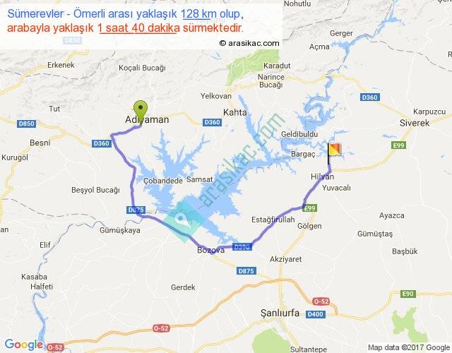 Sümerevler - Ömerli arası yaklaşık olarak 90 km/h ile yukarıda belirtilen sürede olup, iki yerin kuş uçuşu uzaklığı (mesafesi) 66'dir. Yolculuk otobüsle 2 saat 10 dakika sürmektedir.