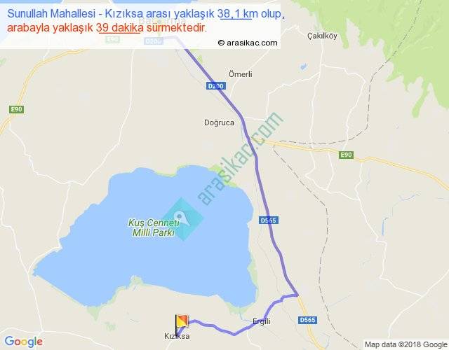 Sunullah Mahallesi - Kızıksa arası yaklaşık olarak 90 km/h ile yukarıda belirtilen sürede olup, iki yerin kuş uçuşu uzaklığı (mesafesi) 25'dir. Yolculuk otobüsle 50 dakika sürmektedir.