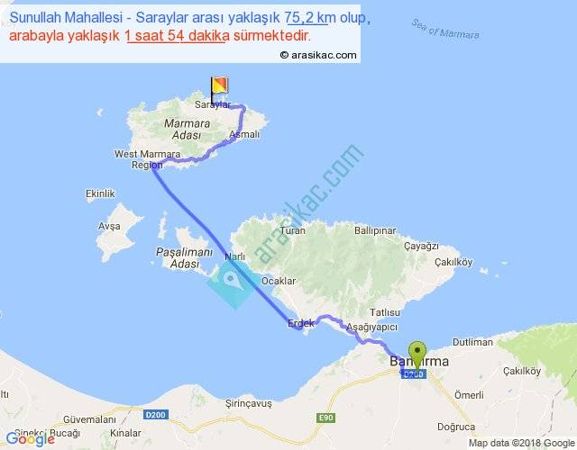 Sunullah Mahallesi - Saraylar arası yaklaşık olarak 90 km/h ile yukarıda belirtilen sürede olup, iki yerin kuş uçuşu uzaklığı (mesafesi) 43'dir. Yolculuk otobüsle 2 saat 28 dakika sürmektedir.
