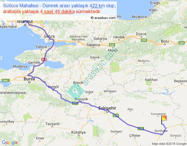 Eğer Sütlüce Mahallesi Dümrek arası ne kadar yakar (benzin/mazot) diyorsanız, kilometrede 3 ₺ yakan bir aracınız var ise 1266, km'de 4 ₺ yakan bir aracınız var ise 1688, km'de 5 ₺ yakan bir aracınız var ise 2110 ile bu yolculuğu tamamlayabilirsiniz.