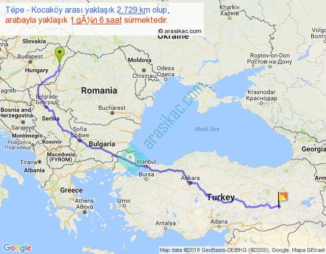 Tépe - Kocaköy arası yaklaşık olarak 90 km/h ile yukarıda belirtilen sürede olup, iki yerin kuş uçuşu uzaklığı (mesafesi) 1824'dir. Eğer belirtilen yerler arasında uçak seferi var ise bu süre uçakla 2 saat 48 dakika'ya kadar düşebilir. Yolculuk otobüsle 1 gün 15 saat sürmektedir.