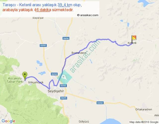 Taraşcı - Ketenli arası yaklaşık olarak 90 km/h ile yukarıda belirtilen sürede olup, iki yerin kuş uçuşu uzaklığı (mesafesi) 28'dir. Yolculuk otobüsle 59 dakika sürmektedir.