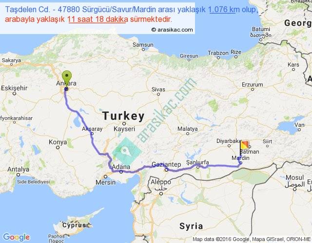 Taşdelen Cd. - 47880 Sürgücü Savur Mardin arası detaylı bilgi