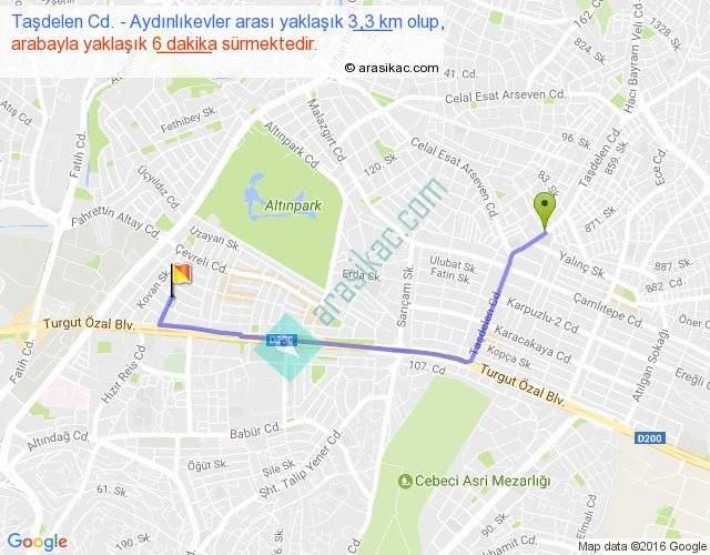 Taşdelen Cd. - Aydınlıkevler arası detaylı bilgi