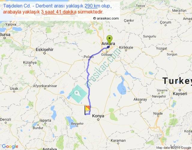 Taşdelen Cd. - Derbent arası yaklaşık olarak 90 km/h ile yukarıda belirtilen sürede olup, iki yerin kuş uçuşu uzaklığı (mesafesi) 229'dir. Yolculuk otobüsle 4 saat 47 dakika sürmektedir.
