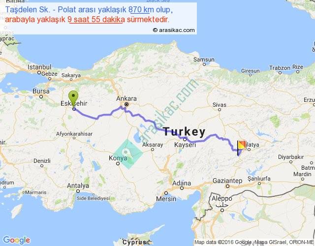 Taşdelen Sk. - Polat arası yaklaşık olarak 90 km/h ile yukarıda belirtilen sürede olup, iki yerin kuş uçuşu uzaklığı (mesafesi) 658'dir. Eğer belirtilen yerler arasında uçak seferi var ise bu süre uçakla 1 saat 00 dakika'ya kadar düşebilir. Yolculuk otobüsle 12 saat 53 dakika sürmektedir.