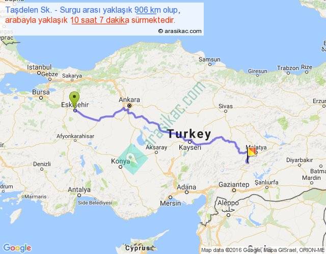 Taşdelen Sk. - Surgu arası yaklaşık olarak 90 km/h ile yukarıda belirtilen sürede olup, iki yerin kuş uçuşu uzaklığı (mesafesi) 673'dir. Eğer belirtilen yerler arasında uçak seferi var ise bu süre uçakla 1 saat 02 dakika'ya kadar düşebilir. Yolculuk otobüsle 13 saat 9 dakika sürmektedir.