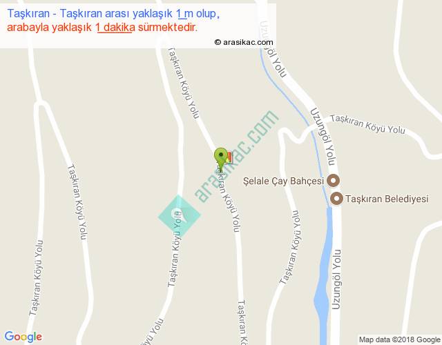 Taşkıran - Taşkıran arası yaklaşık olarak 90 km/h ile yukarıda belirtilen sürede olup, iki yerin kuş uçuşu uzaklığı (mesafesi) 0'dir. Yolculuk otobüsle 1 dakika sürmektedir.