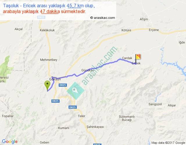 Eğer Taşoluk Ericek arası ne kadar yakar (benzin/mazot) diyorsanız, kilometrede 3 ₺ yakan bir aracınız var ise 135, km'de 4 ₺ yakan bir aracınız var ise 180, km'de 5 ₺ yakan bir aracınız var ise 225 ile bu yolculuğu tamamlayabilirsiniz.