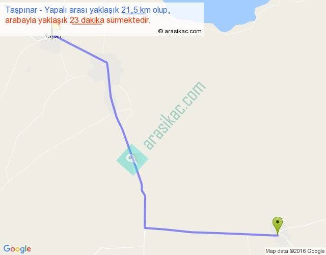 Taşpınar - Yapalı arası yaklaşık olarak 90 km/h ile yukarıda belirtilen sürede olup, iki yerin kuş uçuşu uzaklığı (mesafesi) 18'dir. Yolculuk otobüsle 29 dakika sürmektedir.