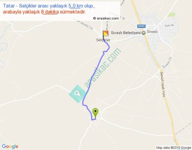 Tatar - Selçikler arası yaklaşık olarak 90 km/h ile yukarıda belirtilen sürede olup, iki yerin kuş uçuşu uzaklığı (mesafesi) 4'dir. Yolculuk otobüsle 10 dakika sürmektedir.