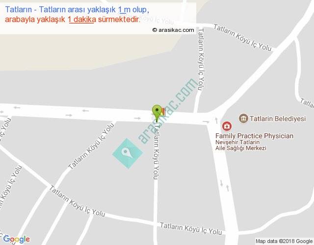 Tatların - Tatların arası yaklaşık olarak 90 km/h ile yukarıda belirtilen sürede olup, iki yerin kuş uçuşu uzaklığı (mesafesi) 0'dir. Yolculuk otobüsle 1 dakika sürmektedir.