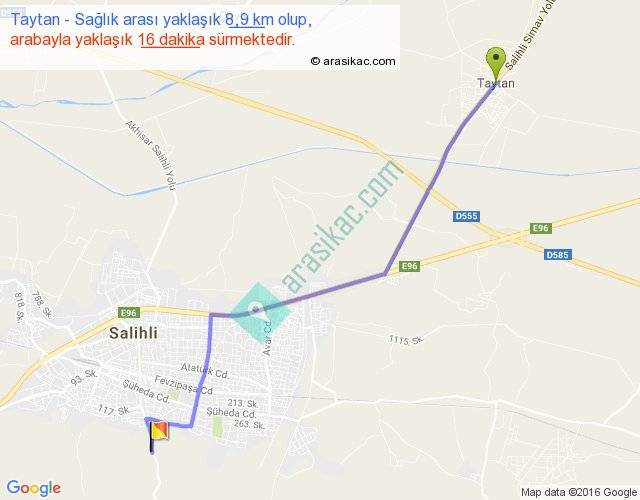 Taytan - Sağlık arası yaklaşık olarak 90 km/h ile yukarıda belirtilen sürede olup, iki yerin kuş uçuşu uzaklığı (mesafesi) 7'dir. Yolculuk otobüsle 20 dakika sürmektedir.