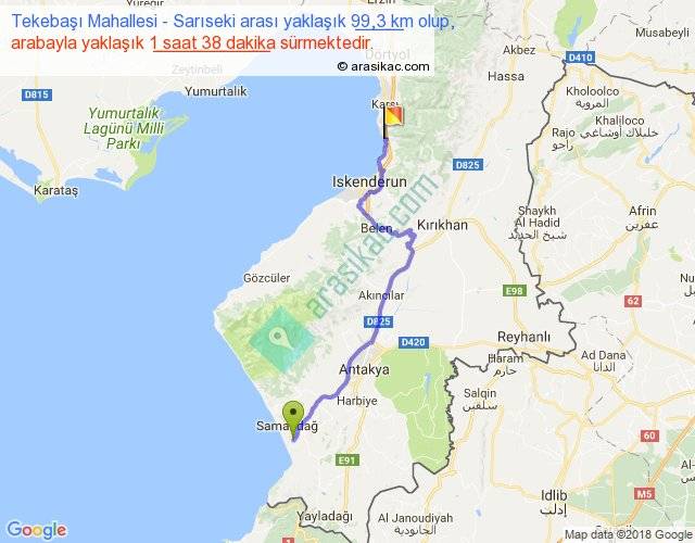 Tekebaşı Mahallesi - Sarıseki arası yaklaşık olarak 90 km/h ile yukarıda belirtilen sürede olup, iki yerin kuş uçuşu uzaklığı (mesafesi) 71'dir. Yolculuk otobüsle 2 saat 7 dakika sürmektedir.
