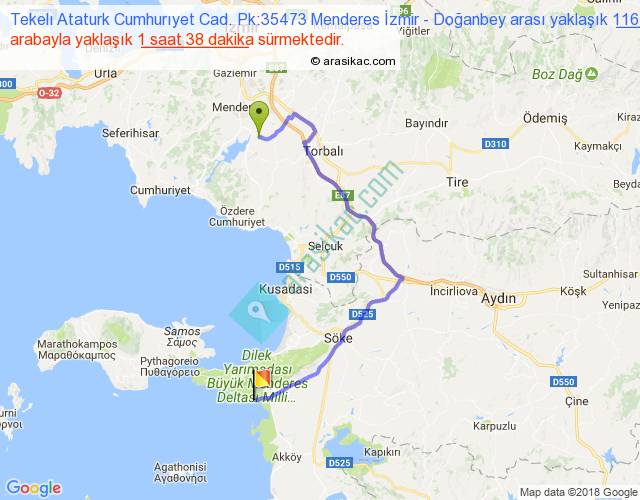 Tekelı Ataturk Cumhurıyet Cad. Pk:35473 Menderes İzmir - Doğanbey arası detaylı bilgi