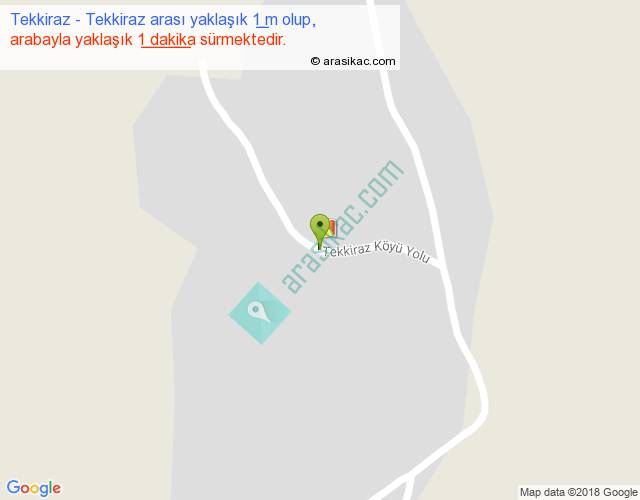 Tekkiraz - Tekkiraz arası yaklaşık olarak 90 km/h ile yukarıda belirtilen sürede olup, iki yerin kuş uçuşu uzaklığı (mesafesi) 0'dir. Yolculuk otobüsle 1 dakika sürmektedir.