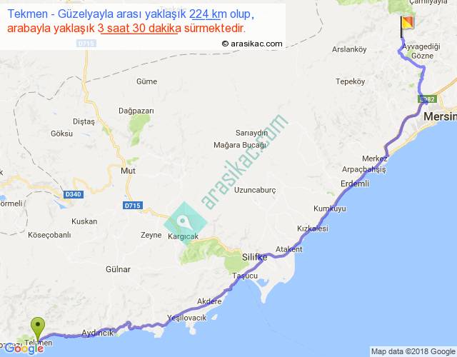 Tekmen - Güzelyayla arası yaklaşık olarak 90 km/h ile yukarıda belirtilen sürede olup, iki yerin kuş uçuşu uzaklığı (mesafesi) 162'dir. Yolculuk otobüsle 4 saat 33 dakika sürmektedir.