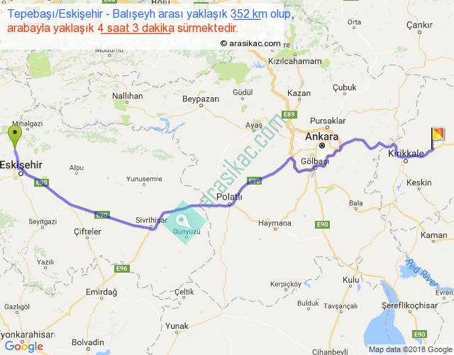 Tepebaşı Eskişehir - Balışeyh arası yaklaşık olarak 90 km/h ile yukarıda belirtilen sürede olup, iki yerin kuş uçuşu uzaklığı (mesafesi) 275'dir. Eğer belirtilen yerler arasında uçak seferi var ise bu süre uçakla 25 dakika'ya kadar düşebilir. Yolculuk otobüsle 5 saat 15 dakika sürmektedir.
