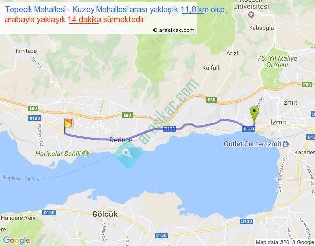 Tepecik Mahallesi - Kuzey Mahallesi arası yaklaşık olarak 90 km/h ile yukarıda belirtilen sürede olup, iki yerin kuş uçuşu uzaklığı (mesafesi) 11'dir. Yolculuk otobüsle 18 dakika sürmektedir.
