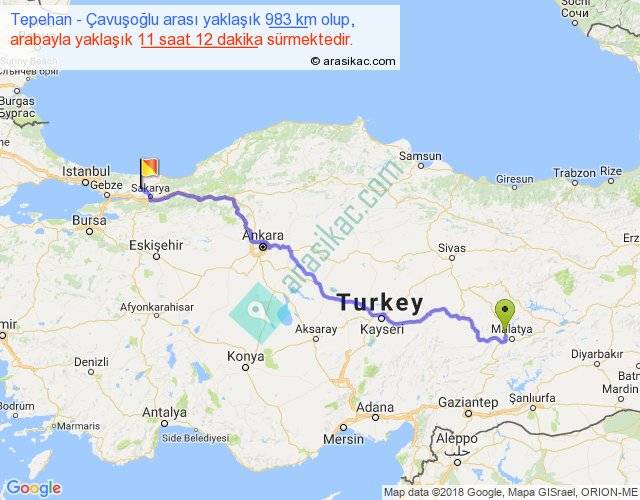 Tepehan - Çavuşoğlu arası yaklaşık olarak 90 km/h ile yukarıda belirtilen sürede olup, iki yerin kuş uçuşu uzaklığı (mesafesi) 731'dir. Eğer belirtilen yerler arasında uçak seferi var ise bu süre uçakla 1 saat 07 dakika'ya kadar düşebilir. Yolculuk otobüsle 14 saat 33 dakika sürmektedir.