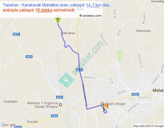 Tepehan - Karakavak Mahallesi arası yaklaşık olarak 90 km/h ile yukarıda belirtilen sürede olup, iki yerin kuş uçuşu uzaklığı (mesafesi) 11'dir. Yolculuk otobüsle 23 dakika sürmektedir.