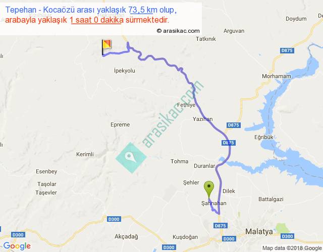 Tepehan - Kocaözü arası yaklaşık olarak 90 km/h ile yukarıda belirtilen sürede olup, iki yerin kuş uçuşu uzaklığı (mesafesi) 42'dir. Yolculuk otobüsle 1 saat 18 dakika sürmektedir.