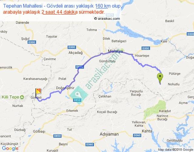 Tepehan Mahallesi - Gövdeli arası yaklaşık olarak 90 km/h ile yukarıda belirtilen sürede olup, iki yerin kuş uçuşu uzaklığı (mesafesi) 98'dir. Yolculuk otobüsle 3 saat 33 dakika sürmektedir.