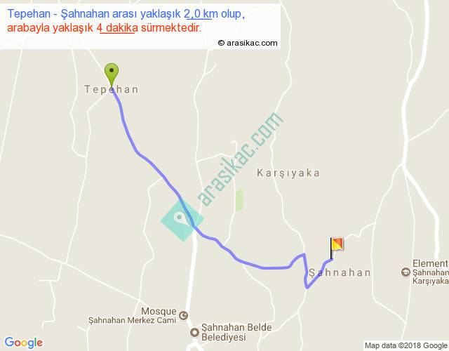 Tepehan - Şahnahan arası yaklaşık olarak 90 km/h ile yukarıda belirtilen sürede olup, iki yerin kuş uçuşu uzaklığı (mesafesi) 1'dir. Yolculuk otobüsle 5 dakika sürmektedir.