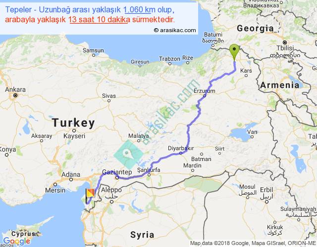 Tepeler - Uzunbağ arası yaklaşık olarak 90 km/h ile yukarıda belirtilen sürede olup, iki yerin kuş uçuşu uzaklığı (mesafesi) 784'dir. Eğer belirtilen yerler arasında uçak seferi var ise bu süre uçakla 1 saat 12 dakika'ya kadar düşebilir. Yolculuk otobüsle 17 saat 7 dakika sürmektedir.