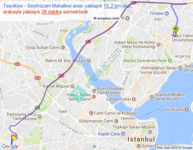Teşvikiye - Seyitnizam Mahallesi arası yaklaşık olarak 90 km/h ile yukarıda belirtilen sürede olup, iki yerin kuş uçuşu uzaklığı (mesafesi) 9'dir. Yolculuk otobüsle 36 dakika sürmektedir.
