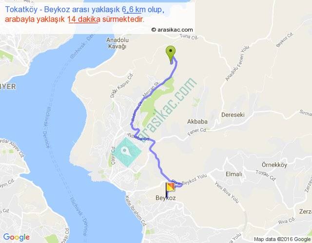Tokatköy - Beykoz arası yaklaşık olarak 90 km/h ile yukarıda belirtilen sürede olup, iki yerin kuş uçuşu uzaklığı (mesafesi) 4'dir. Yolculuk otobüsle 18 dakika sürmektedir.